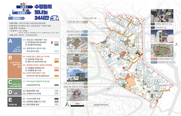 동구 수정2동의 ‘수정동의 빛나는 24시간’은 빈집을 전면 정비하고 임대주택 공급과 집수리 사업을 확대해 주거 환경을 개선하는 것이 핵심이다. 생활기반시설(SOC)을 확충해 주민 삶의 질을 높이는 데 초점을 맞춘다.