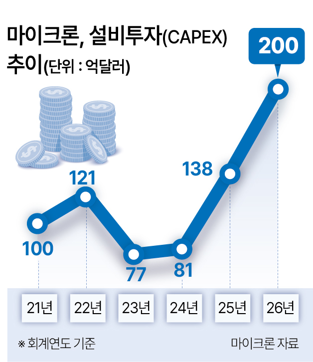 이날 실적 발표 후 진행된 콘퍼런스 콜에서도 마이크론은 이같은 기조를 재확인했다. 설비투자 중 시설·장비·건설의 구성 비중을 묻는 질문에 “2026년 ‘건설’ 투자금액은 2025년 대비 대략 두 배 늘릴 계획”이라며 “2027년에도 2026년 대비 총 설비투자 규모는 증가할 것”이라고 답했다.