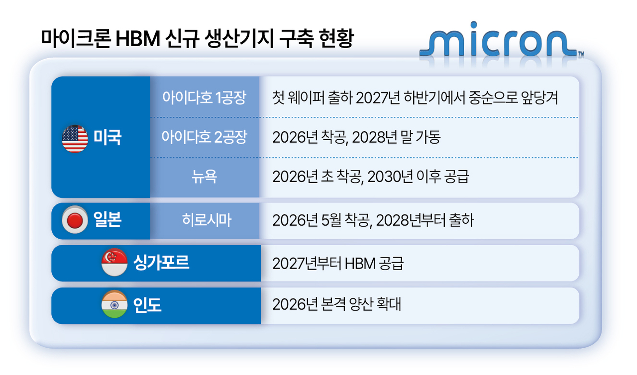 마이크론은 현재 공사 중인 생산시설의 가동 시점도 앞당기겠다고 밝혔다. 삼성전자·SK하이닉스와의 HBM 물량 경쟁에서 밀리지 않기 위해 서두르는 모습이다.