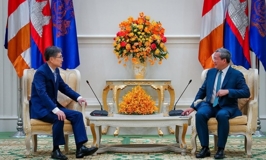 | 조현 외교부장관이 지난달 10일 캄보디아에서 훈 마넷 캄보디아 총리와 대화를 나누고 있다. [외교부 제공] |