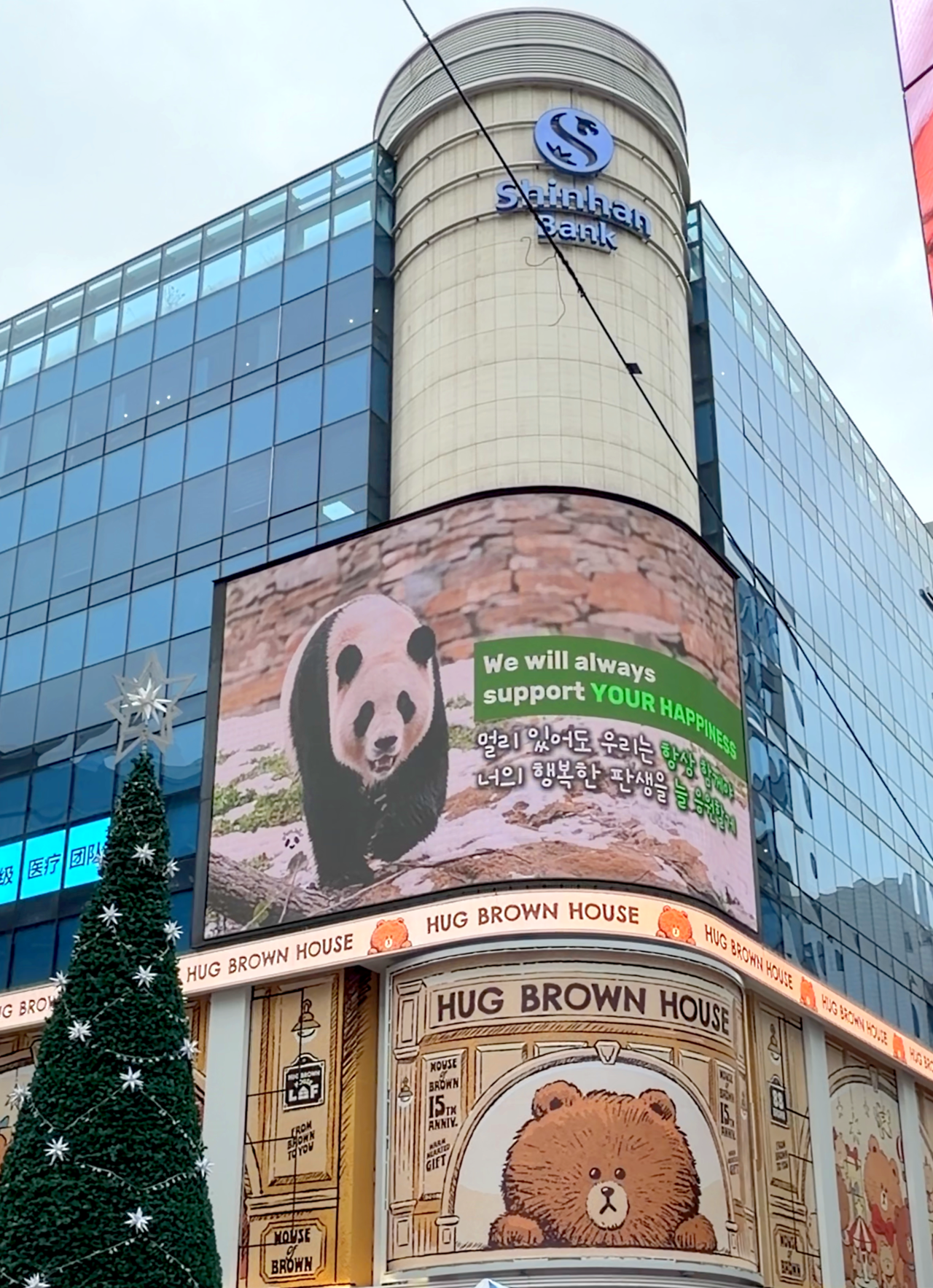 | 19일부터 명동 한복판에서 송출되는 푸바오 팬들의 성탄 인사 영상광고 |