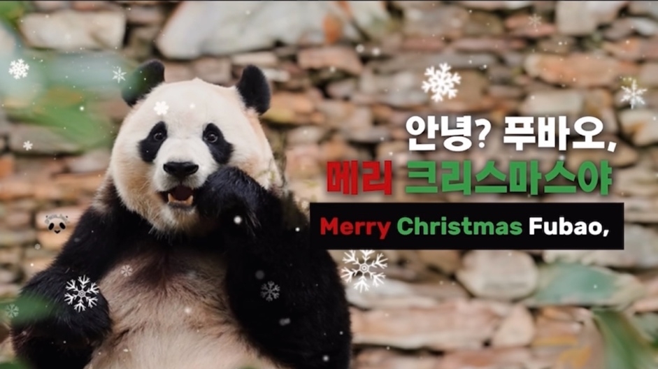 한국산 첫 자이언트판다 푸바오의 팬클럽 ‘푸_키퍼팀(Fu_keeper team)’이 내건 성탄 기념 인사 광고물이다.