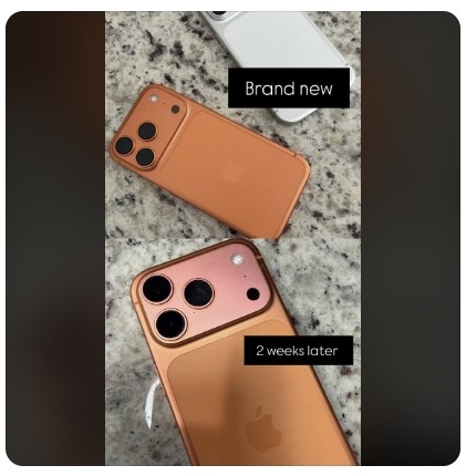 실제로 해외 커뮤니티 레딧 등에서는 코스믹 오렌지 모델의 카메라 모듈 주변이 1~2주 사용 후 로즈골드 색조로 바뀌었다는 사진과 함께, 도색이 점차 제품 전반으로 퍼졌다는 글을 찾아볼 수 있다.
