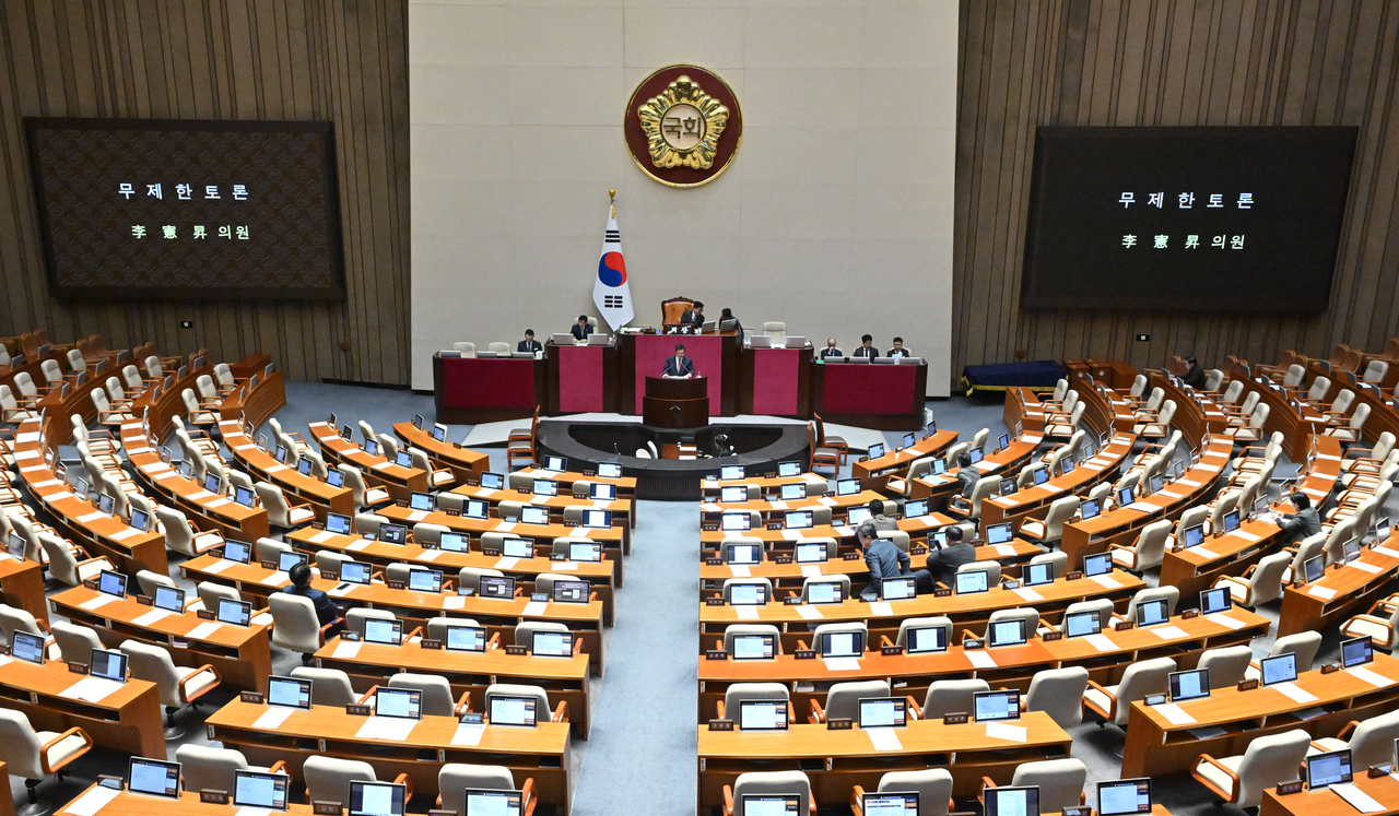 [헤럴드경제=정주원 기자] 여야가 연말 국회에서 다시 필리버스터(무제한 토론을 통한 합법적 의사진행 방해) 대치 국면에 들어섰다. 더불어민주당이 이른바 허위정보근절법과 내란전담재판부 설치법 처리 방침을 밝히자, 국민의힘은 ‘악법 저지’를 내걸고 필리버스터로 맞대응을 예고했다.