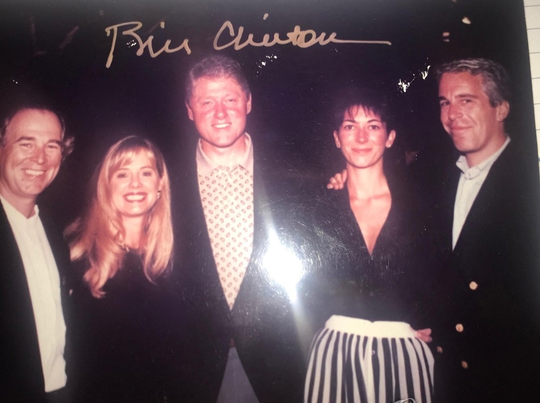 | 미성년자 성착취범 고(故) 제프리 엡스타인이 보관해온 사진으로 엡스타인(오른쪽)이 빌 클린턴 전 미국 대통령(중앙)과 함께 포즈를 취하고 있다. 미국 하원 감독위원회 소속 민주당 의원들이 지난 12일(현지시간) 이 사진을 공개했다. [AFP] |