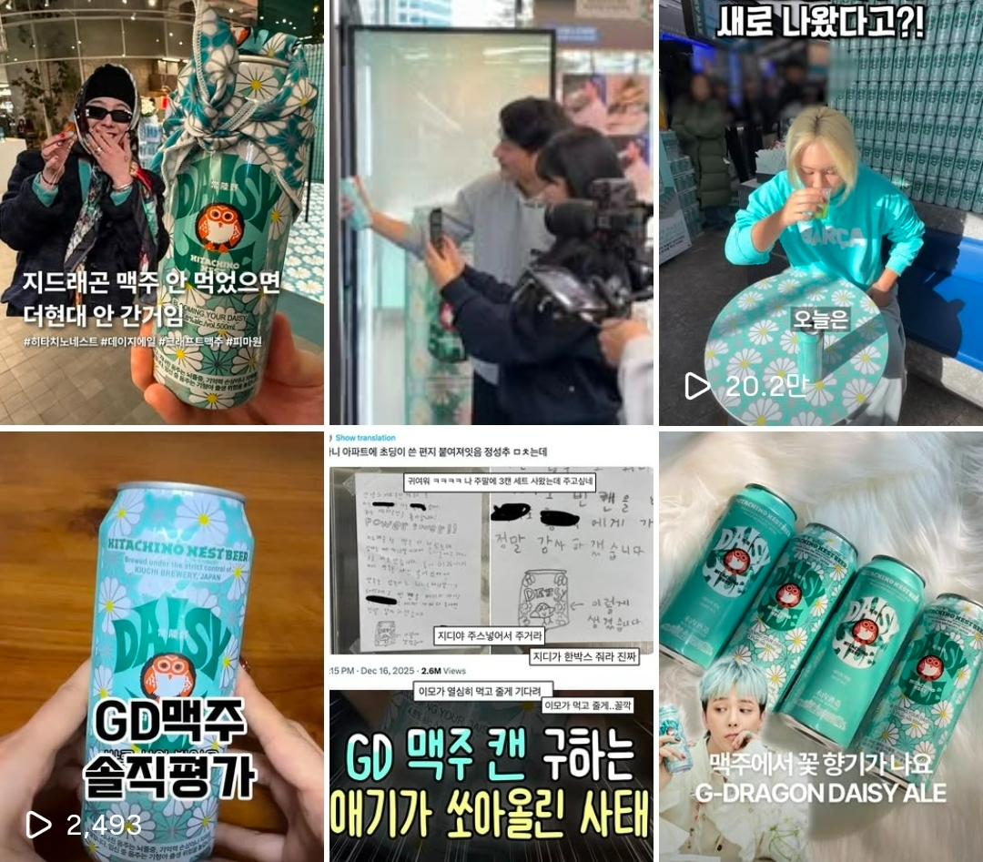 GS25가 지난달 출시한 맥주 ‘데이지에일’이 대표적인 사례다. 패키지 디자인에 인기 아티스트 지드래곤의 패션 브랜드 ‘피스마이너스원’이 참여했는데, 팬들 사이에서 ‘굿즈’로 소비되며 소셜미디어(SNS)에 “지디 맥주 먹어봤다”는 후기 인증으로 이어졌다.