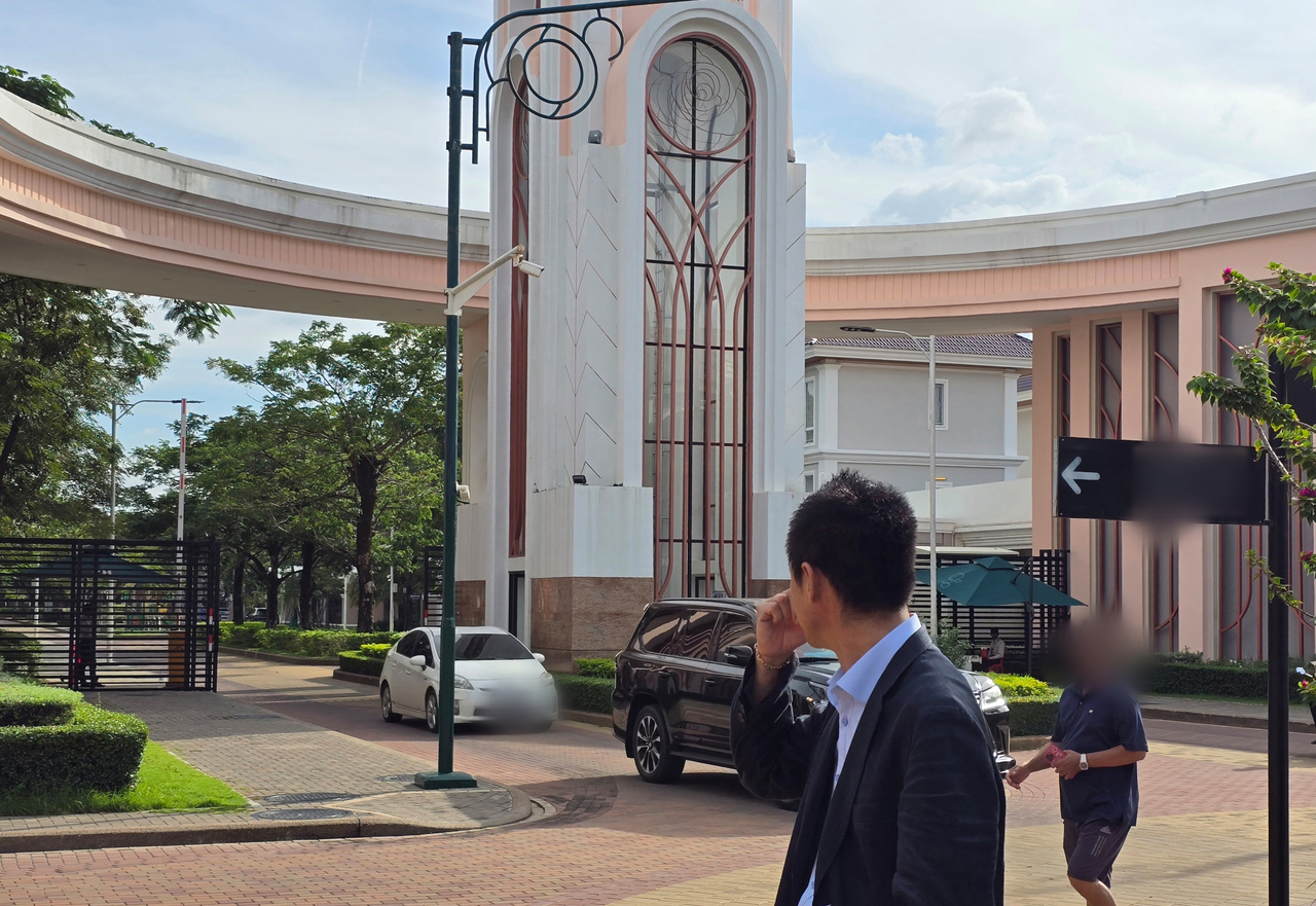 | 26일 오후(현지시간) 한국 청년들이 갇혀있는 것으로 추정되는 캄보디아 프놈펜의 한 고급 주택단지. [연합] |