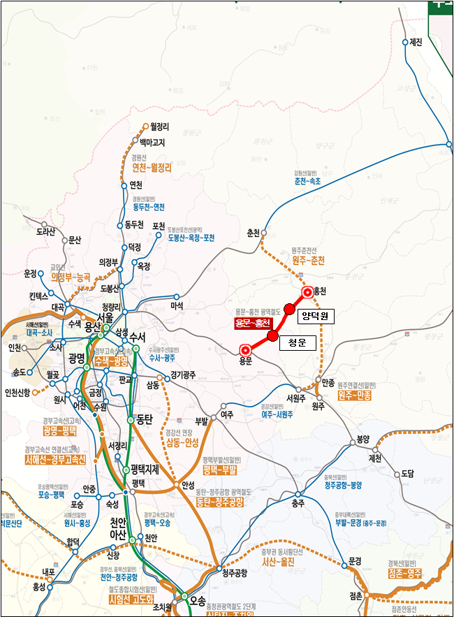 용문~홍천 철도사업은 경기 양평군 용문역부터 강원 홍천군까지 32.7km 구간에 단선 광역철도를 신설하는 사업으로 총사업비는 1조995억원 규모다.