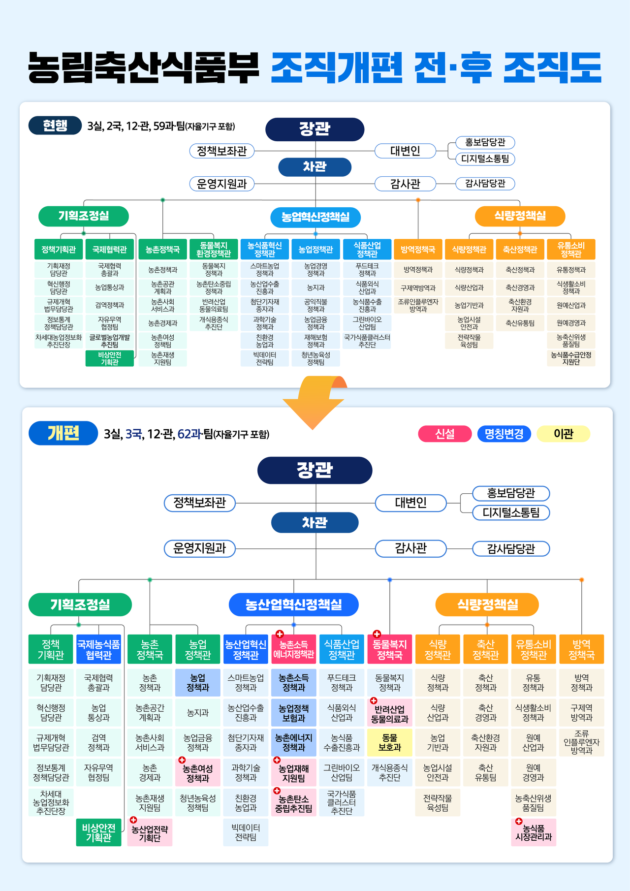 | 농림축산식품부 조직개편 전후 조직도 [농림축산식품부] |