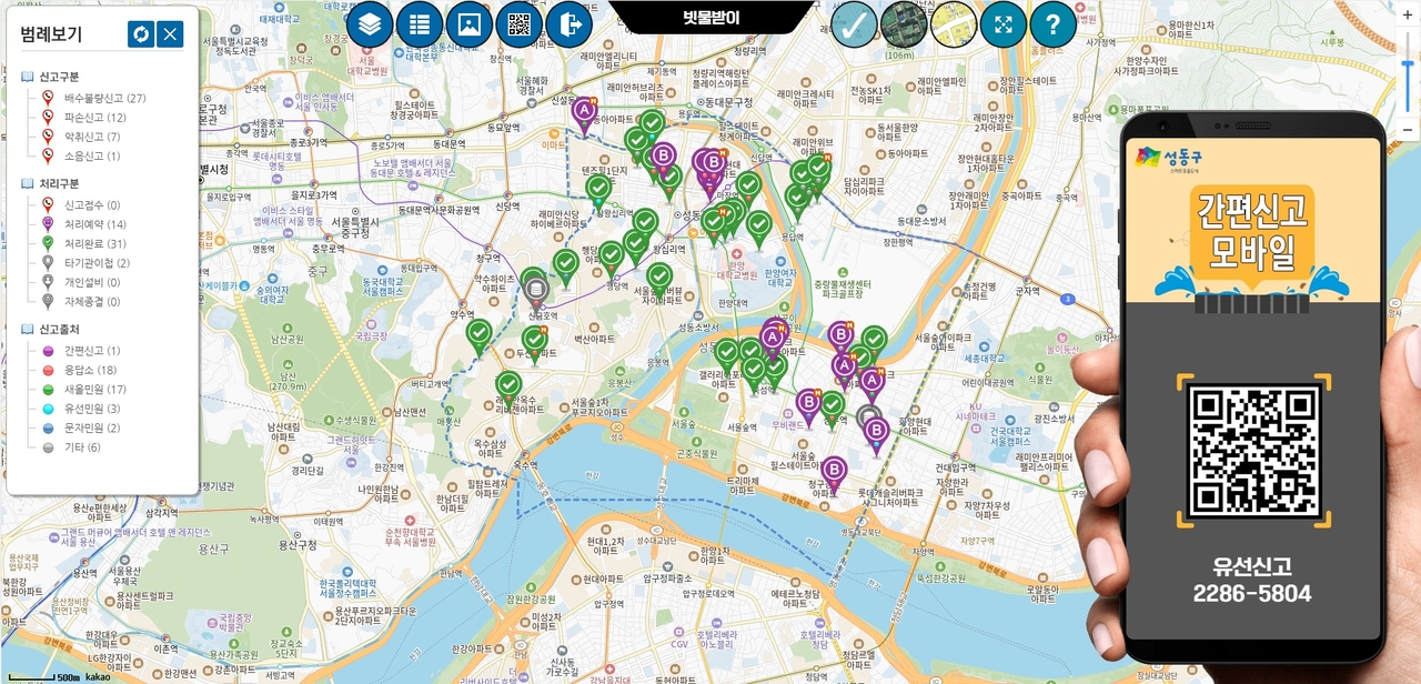 [헤럴드경제=박종일 선임기자]서울 성동구(구청장 정원오)는 빗물받이, 도로, 보도블록 등 공공 시설물 관련 불편 사항을 간편하고 빠르게 신고할 수 있는 ‘생활불편신고 통합플랫폼’을 자체 개발하여 운영하고 있다.