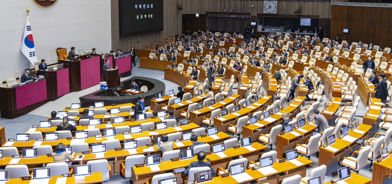 장 대표는 무제한 토론에서 내란전담재판부 설치법의 위헌성을 부각하며 “이 법안이 통과되면 이재명 대통령이 재의요구권(거부권)을 행사해야 한다”고 요구했다. 국민의힘 의원들도 조를 짜서 이날 새벽까지 교대로 본회의장을 지키며 장 대표에게 힘을 보탰다.