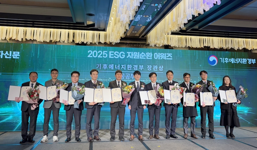 | 국민연금공단은 24일 기후에너지환경부, E-순환거버넌스가 개최한 ‘2025 ESG 자원순환 어워즈’에서 기후에너지환경부 장관상을 수상했다.[국민연금공단 제공] |