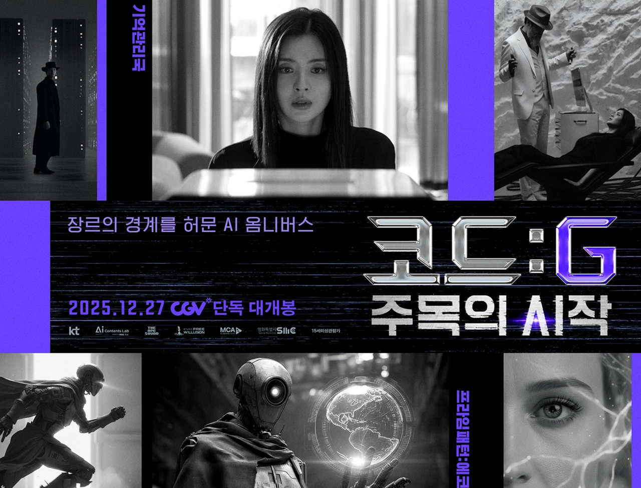 ‘코드:G 주목의 시작’은 KT가 공동 기획·투자한 생성형 AI 영화 프로젝트로, 오는 27일 CGV에서 단독 개봉한다. 이번 프로젝트는 KT 그룹의 미디어·콘텐츠 전략에 따라 추진됐으며, KT와 KT 미디어 그룹사 내 R&D 인력이 공동 기획에 참여했다.