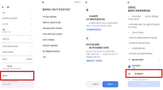 [헤럴드경제=김은희 기자] #. A씨는 은행서비스 탈퇴를 위해 통합 애플리케이션에 접속했지만 탈퇴 버튼을 확인하기 어려웠다. 전체 설정에서 ‘탈퇴하기’를 찾아 누르고 들어갔더니 탈퇴하는 이유에 대한 설문응답을 요구했다. 설문에 답하자 서비스 이용 혜택을 안내하는 창으로 연결됐다. ‘탈퇴하기’를 다시 눌렀지만 탈퇴 전 확인 사항을 안내했고 안내문을 다 읽고 나서야 탈퇴할 수 있었다.