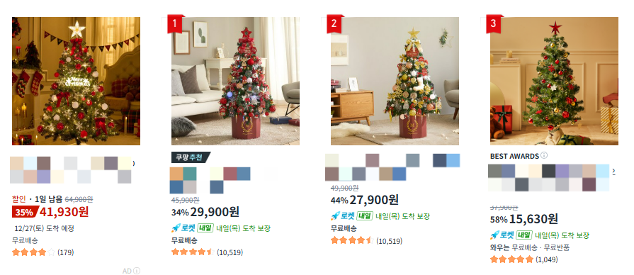 | 쿠팡에서 판매하고 있는 크리스마스 트리.[쿠팡 홈페이지 갈무리] |