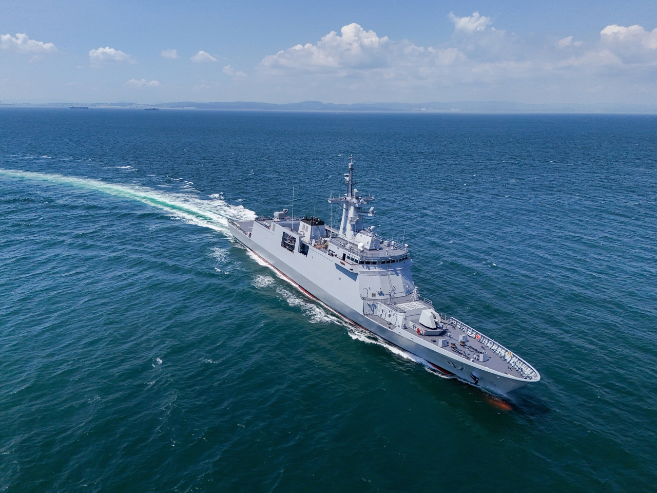 | HD현대중공업은 26일 필리핀 국방부와 3,200톤급 호위함 2척에 대한 건조 계약을 체결했다고 밝혔다. 계약 규모는 8,447억 원으로, 두 함정 모두 2029년 하반기까지 필리핀 해군에 인도될 예정이다. 사진은 HD현대중공업이 올해 10월 필리핀 해군에 인도한 3,200톤급 미겔 말바르급 호위함 2번함 디에고 실랑함의 시운전 모습. [연합] |