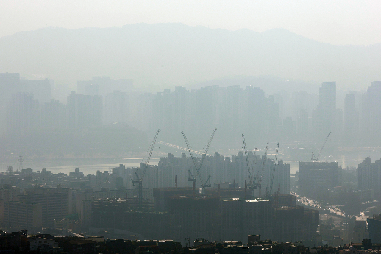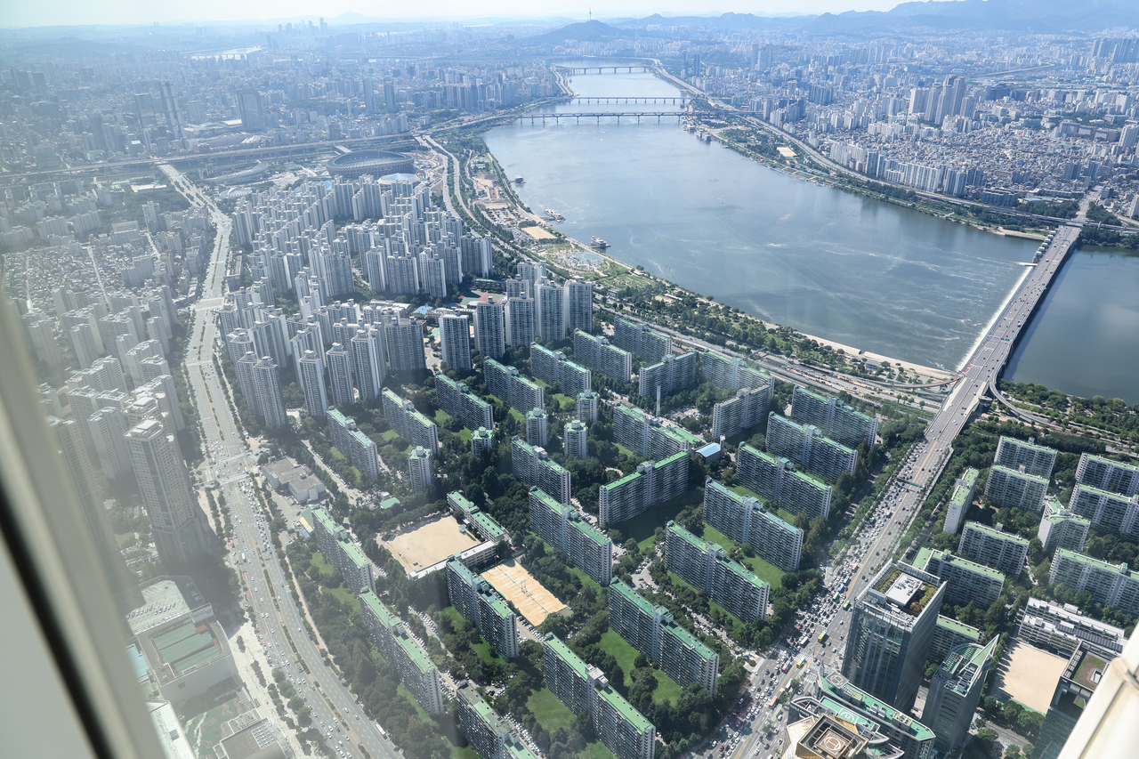 | 서울 남산에서 바라본 한강변 아파트 단지. [연합] |