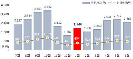| 최근 3년 평균 월별 등산 사고 현황[행정안전부 자료] |