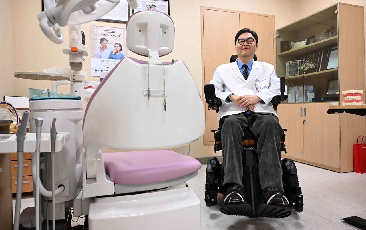 [헤럴드경제=전새날 기자] 진료실 문이 열리자 치과 도구를 집은 의사의 손가락에 투명한 플라스틱 보조기구가 눈에 들어온다. 손의 움직임을 보완하는 장치다. 휠체어에 앉은 채 환자와 눈높이를 맞춘 의사는 익숙한 손놀림으로 진료를 이어간다.