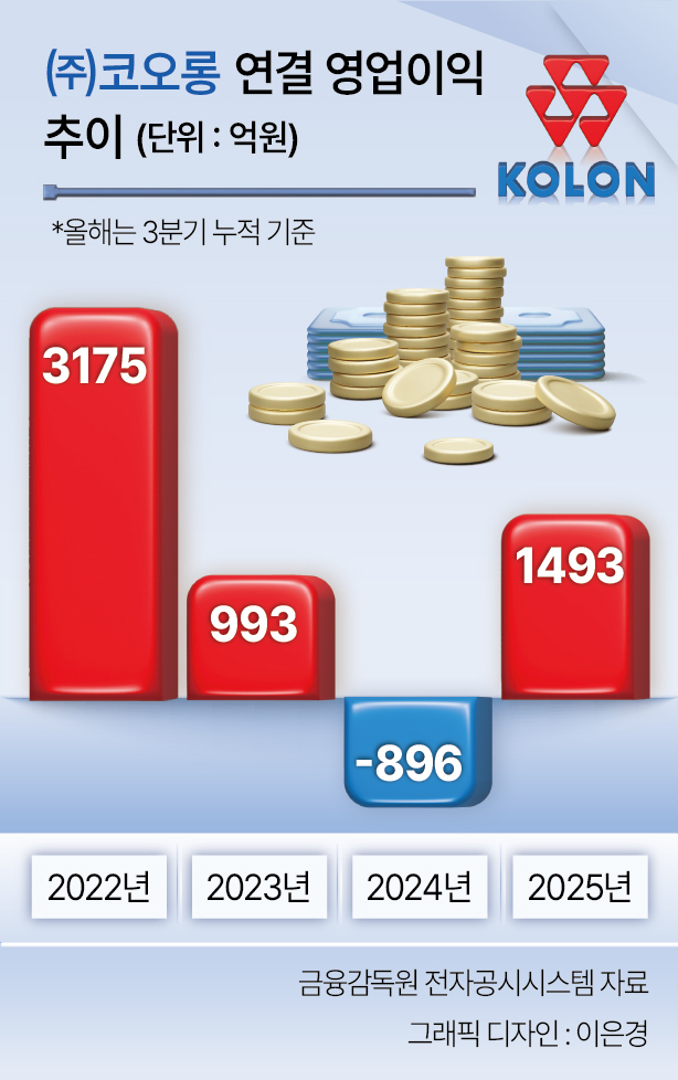 또 다른 주력 계열사인 코오롱글로벌은 국내 건설 시장 악화로 지난해 567억원의 적자를 기록했다. 2012년 이후 12년만에 적자로 전환됐다. 코오롱글로벌의 적자로 ㈜코오롱은 지난해 896억원의 영업손실을 냈다. 지주사 체제로 전환된 이래 첫 적자를 기록했다.