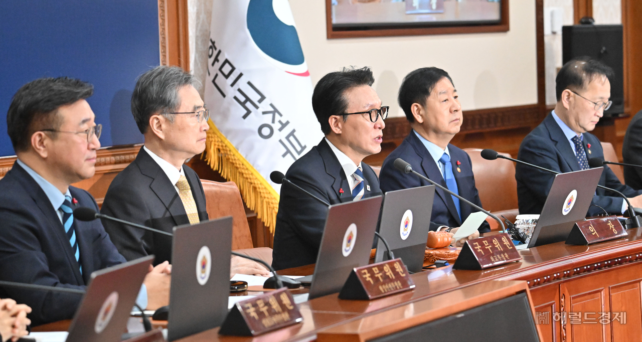 [헤럴드pic] 2025년 마지막 국무회의 주재하는 김민석 국무총리 글꼴 선택 본문 텍스트 크게본문 텍스트 작게 인쇄 [헤럴드경제=임세준 기자] 김민석(가운데) 국무총리가 31일 오전 서울 종로구 정부서울청사에서 열린 임시 국무회의에서 모두발언을 하고 있다.