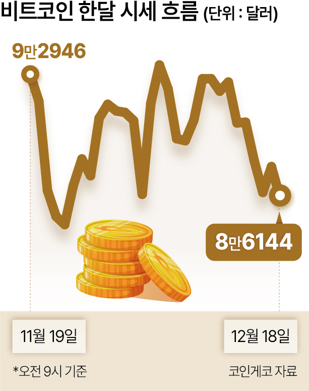 [헤럴드경제=정태일 기자] 최소 6개월 안에 17만달러까지 간다던 비트코인은 8만달러 선에서 올라서지 못하며 2022년부터 연간 기준 2년 연속 상승장을 마감, 2025년 결국 하락세로 돌아서게 됐다.