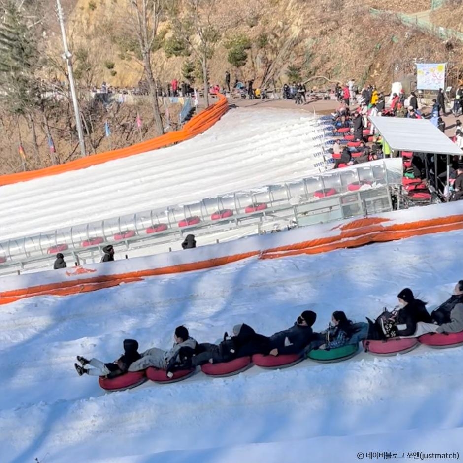 양주 눈썰매장의 명물은 ‘줄줄이 썰매’다. 썰매 여러 대를 기차처럼 연결한 이 썰매는 최대 10명까지 탑승 가능하다. 인원이 많을수록 가속도가 붙기 때문에, 아이와 어른 모두 남다른 스릴감을 즐길 수 있다.