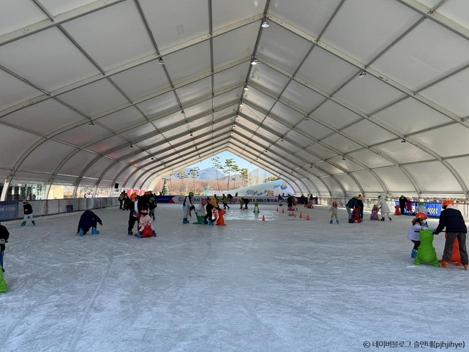 공룡·돌고래 모양의 귀여운 보조 기구가 있어 넘어질 걱정 없이 안정적으로 스케이트를 익힐 수 있다. 아이스 튜브 슬라이드는 슬로프 높이가 비교적 낮아 겁이 많은 아이들도 안전하게 즐길 수 있다.
