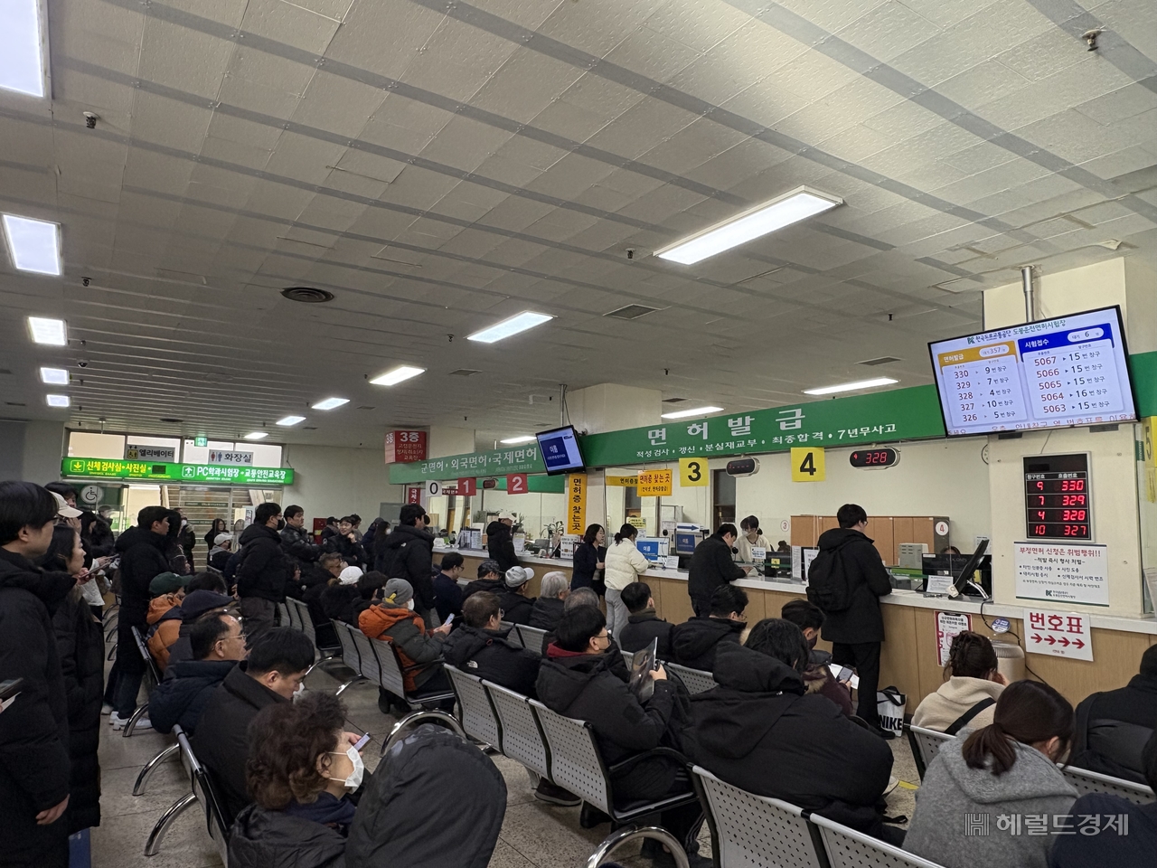 [헤럴드경제=정주원 기자] 2025년 한 해의 마지막 날인 31일 오전 9시 30분경 서울 도봉운전면허시험장 정문 전광판에는 이미 ‘대기 인원 350명’이라는 숫자가 떠 있었다. 주차장 진입로에는 ‘만차’ 안내판이 세워졌고, 차들은 진입을 포기한 채 인근 골목을 몇 바퀴씩 맴돌았다. 주차 요원은 “오늘은 자리 나기까지 30분 이상 걸린다”며 “주차 공간은 알아서 찾아야 한다”고 안내했다.