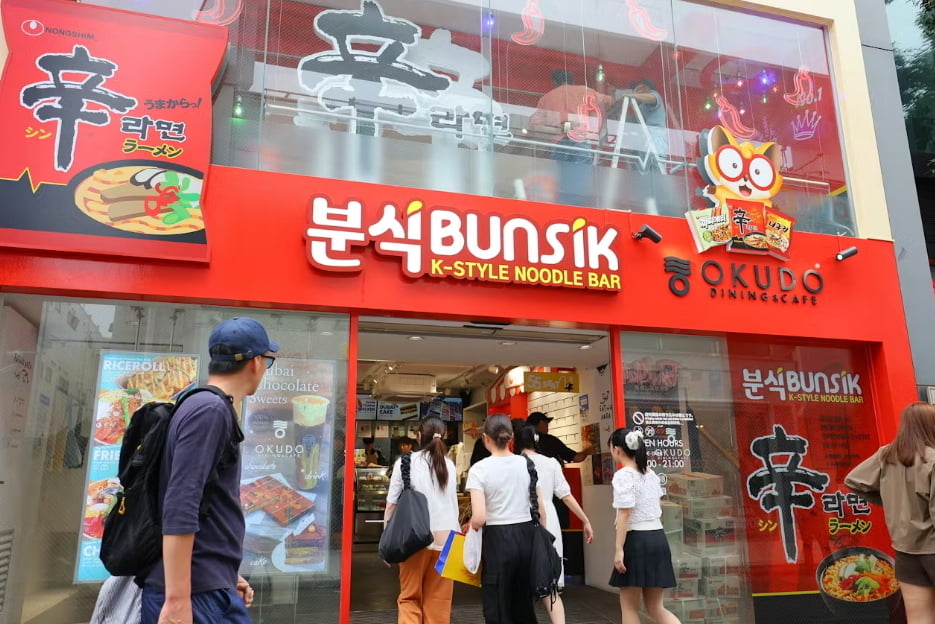 | 지난 6월 도쿄 하라주쿠에 농심이 한국식 라면 전문 매장을 열었다. [닛케이 캡처] |