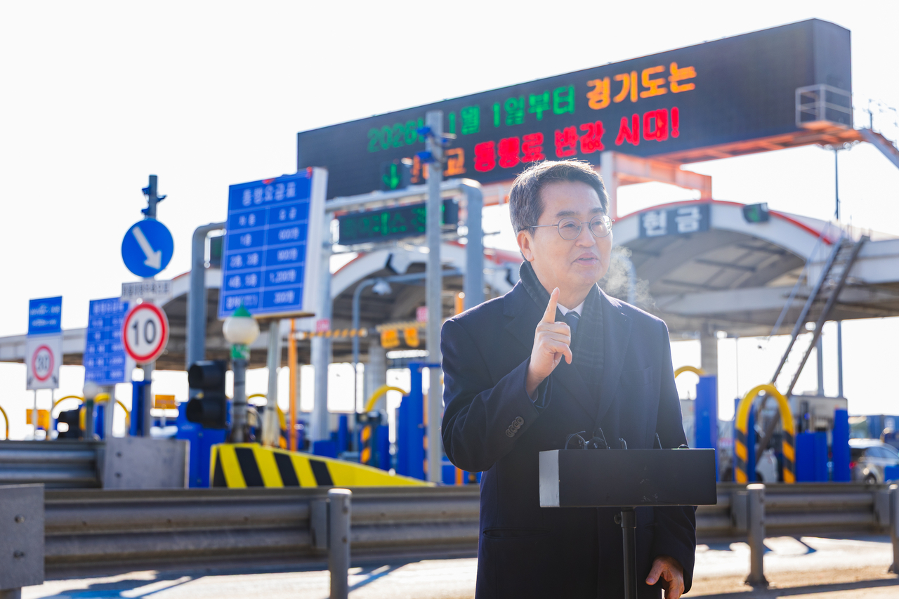 | 김동연 경기도지사가 2일 경기도 김포시 걸포동 일산대교 요금소에서 통행 상황을 살펴보며 발언하고 있다. [경기도청 제공] |