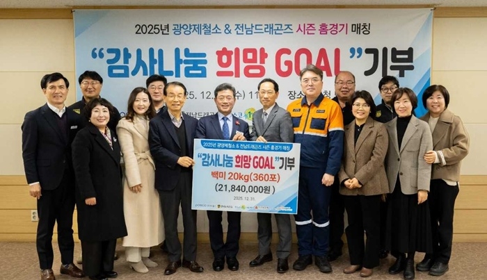 박종일 광양제철소 행정부소장은 “올 한 해 광양제철소와 전남드래곤즈에 많은 사랑과 응원을 보내주신 만큼 적립한 쌀이 연말을 맞이하는 이웃들에게 작은 힘이 되기를 진심으로 바란다”고 전했다.