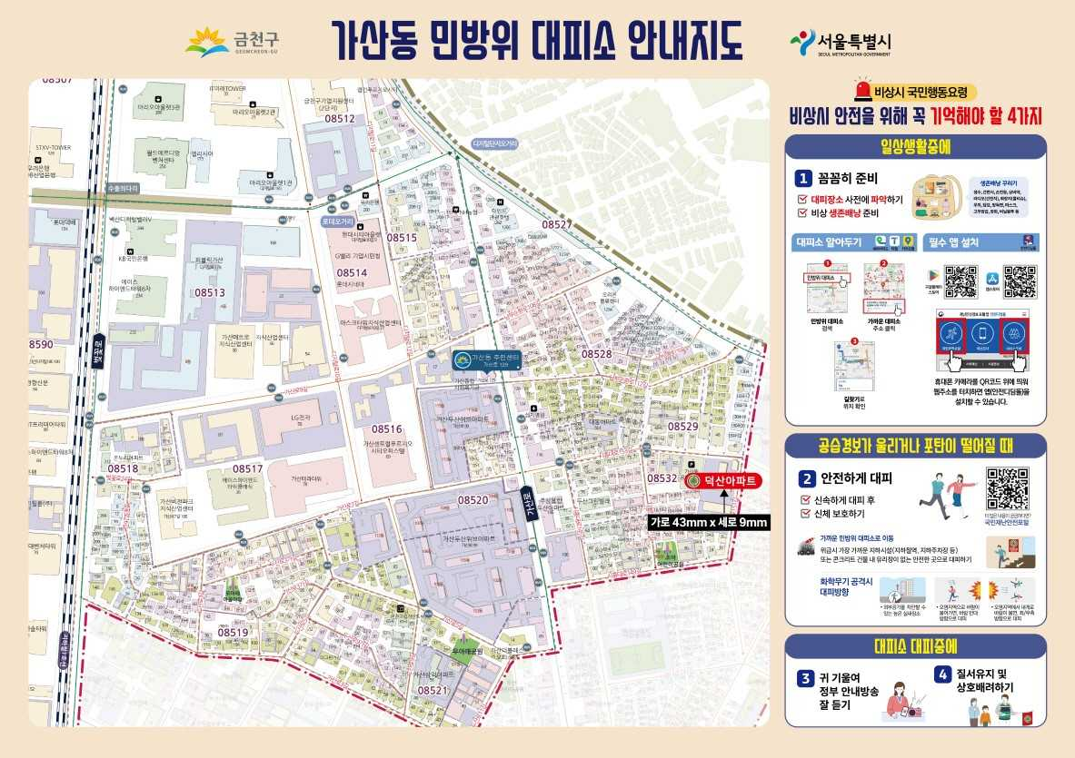 유성훈 금천구청장은 “이번 민방위 대피시설 안내지도는 대피 정보와 행동요령을 함께 제공하는 실질적인 안전 안내 자료”라며, “앞으로도 구민의 생명과 안전을 최우선으로 하는 재난 대응 체계를 지속적으로 강화해 나가겠다”라고 밝혔다.