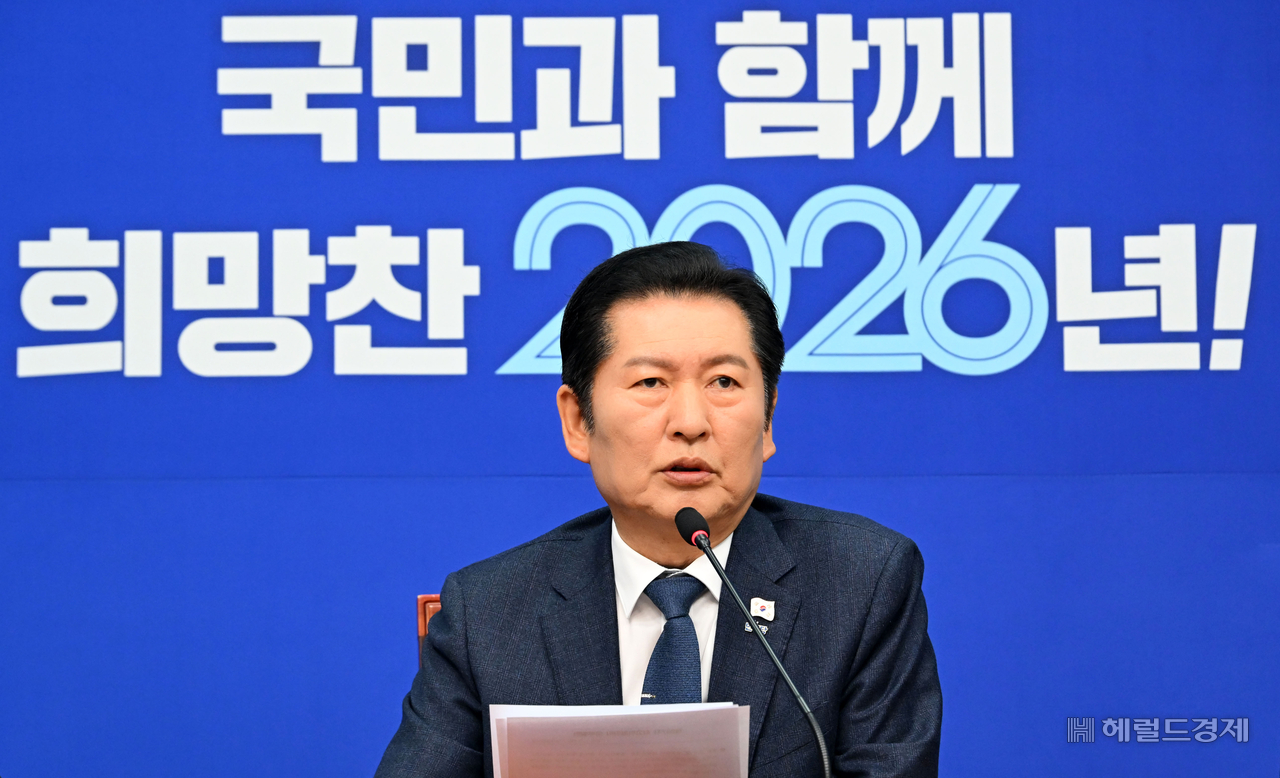 [헤럴드pic] ‘국민과 함께…’ 글꼴 선택 본문 텍스트 크게본문 텍스트 작게 인쇄 [헤럴드경제=이상섭 기자] 정청래 더불어민주당 대표가 5일 오전 서울 여의도 국회에서 열린 최고위원회의에서 모두발언하고 있다.