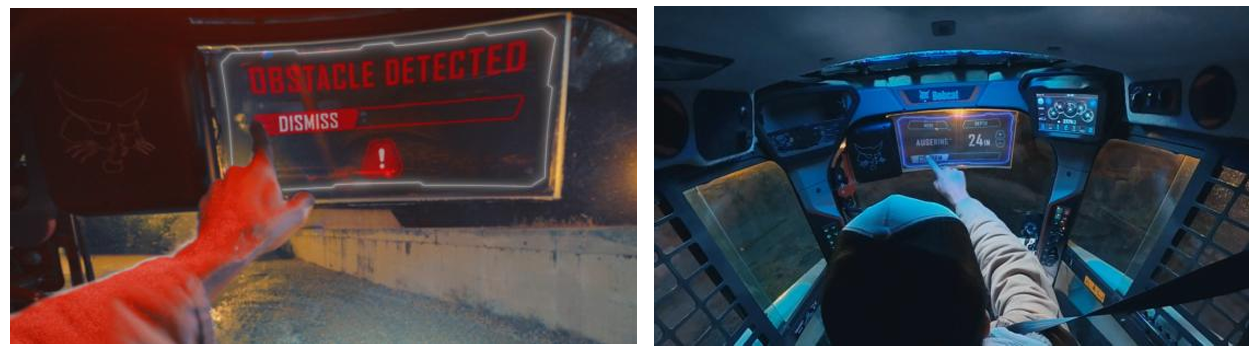 | 두산밥캣의 ‘충돌 경고 및 회피 시스템’(왼쪽)은 충돌을 미리 감지하고 위험 상황에서 직접 개입해 안전을 강화하며, ‘차세대 디스플레이’(오른쪽)는 충돌 알람을 비롯한 다양한 정보를 제공해 작업 효율성을 높인다. [두산밥캣 제공] |