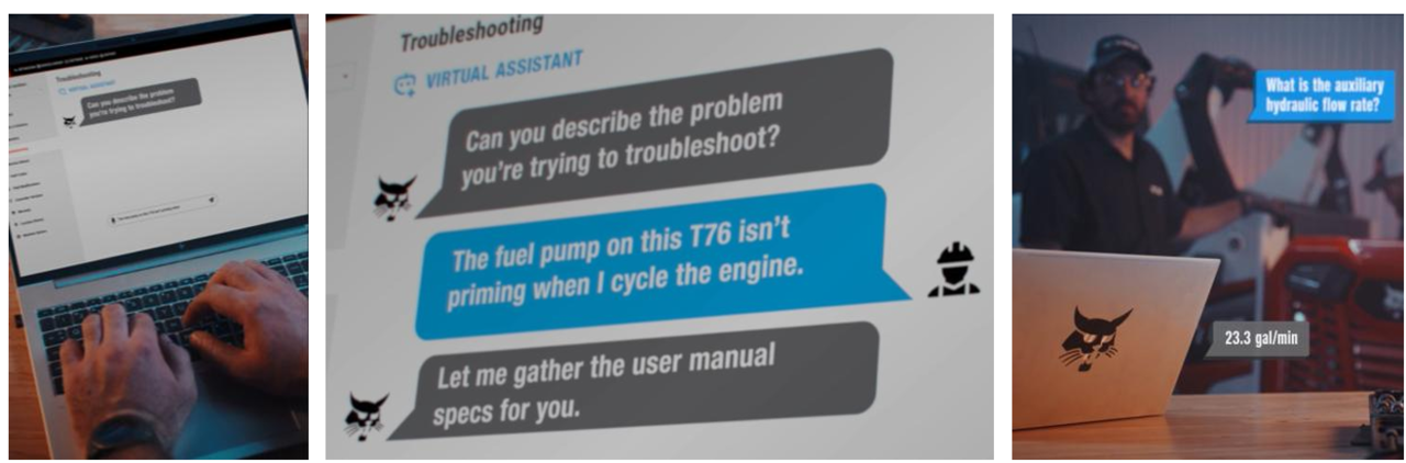 | 두산밥캣 ‘서비스 AI’를 활용하면 정비에 들어가기 전 문제 상황을 입력해 대상 제품과 수리 부위에 해당하는 매뉴얼을 즉시 찾을 수 있으며, 음성으로도 조작이 가능해 정비 중에도 추가 정보를 얻을 수 있다. [두산밥캣 제공] |