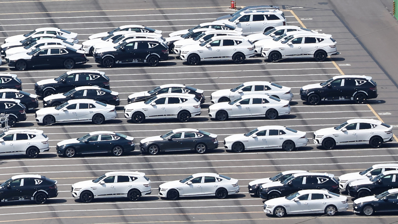 | 현대자동차 울산공장 수출선적부두 옆 야적장에 완성차가 대기하고 있다. 사진은 기사 내용과 무관함. [연합 제공] |