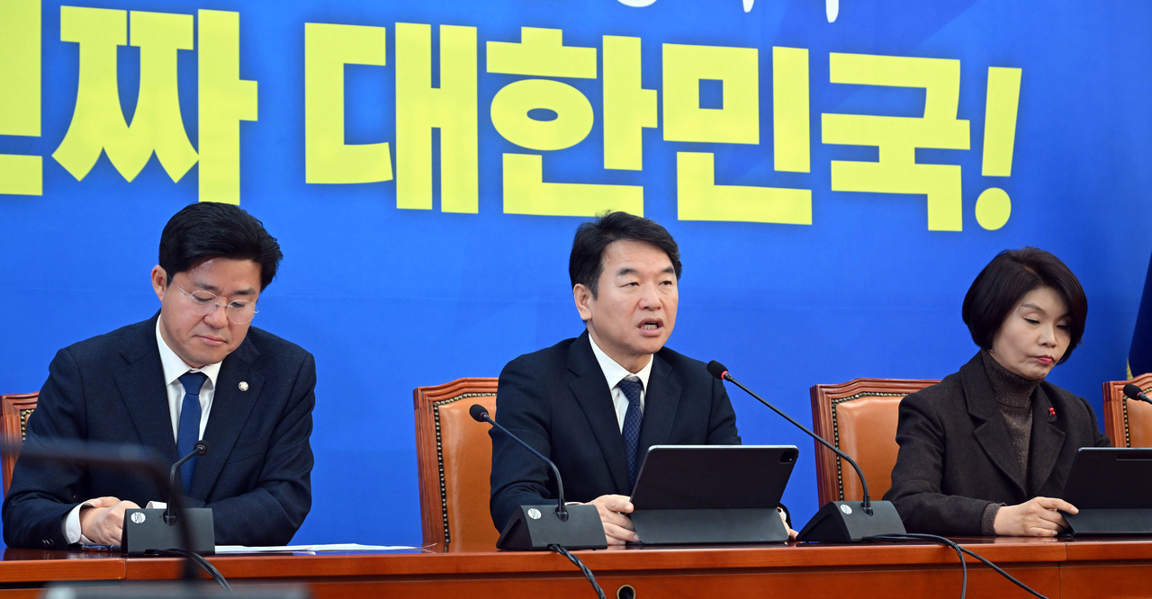 | 문진석 더불어민주당 원내대표 직무대행이 6일 오전 서울 여의도 국회에서 열린 원내대책회의에서 모두발언을 하고 있다. 이상섭 기자 |