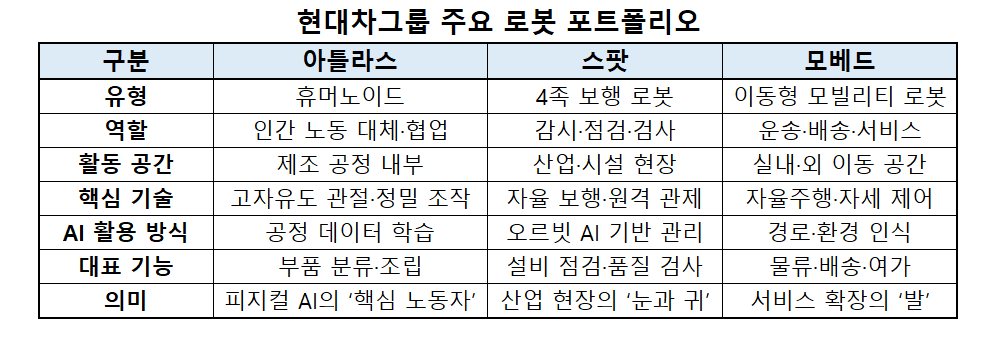 | 현대차그룹 주요 로봇 포트폴리오 |