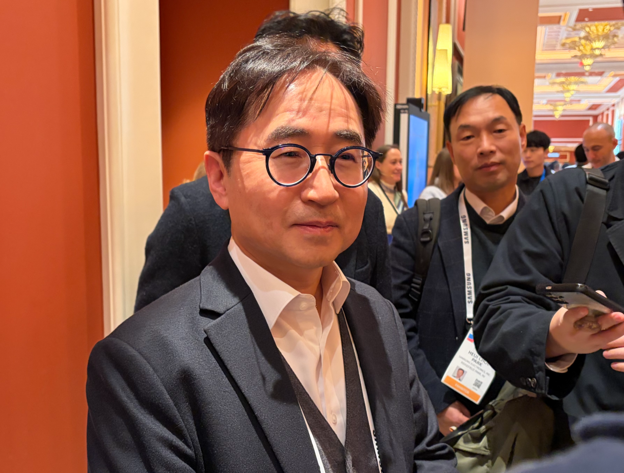 | 장덕현 삼성전기 사장이 6일(현지시간) 미국 라스베이거스에서 개막한 세계 최대 가전·IT전시회 CES 2026 현장에서 윈 호텔에 마련된 삼성전자 단독 전시관을 둘러본 후 기자들과 만나 질문에 답하고 있다. 김현일 기자 |