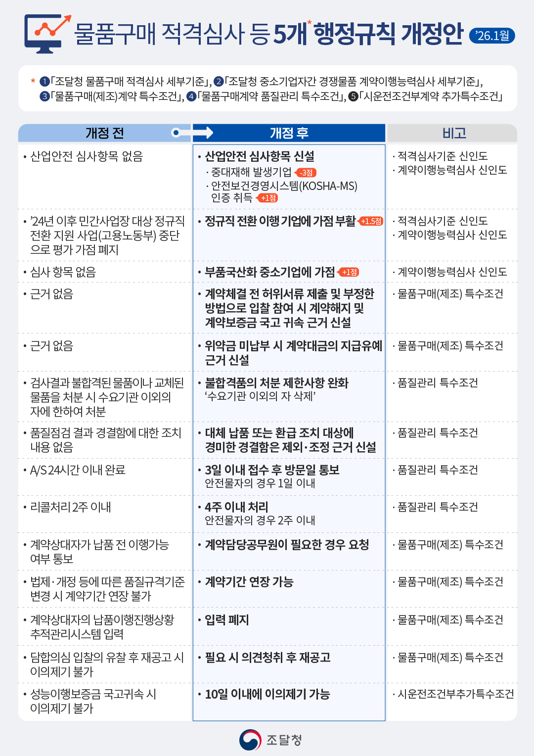 | 조달청 5개 행정규칙 개정안 인포그래픽. |