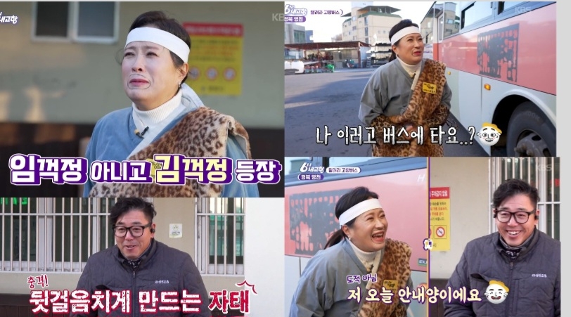 이번 방송의 백미는 단연 ‘임꺽정’으로 변신한 국민 안내양 김정연의 투혼이었다. 2025년 마지막 방송 때 미션 실패한 벌칙으로 호피 무늬 털옷 하나에 의지해 영하 14도의 추위를 견뎌낸 그녀는 버스 안에서 만난 승객들과의 ‘티키타카’를 통해 예능감을 발휘했다.