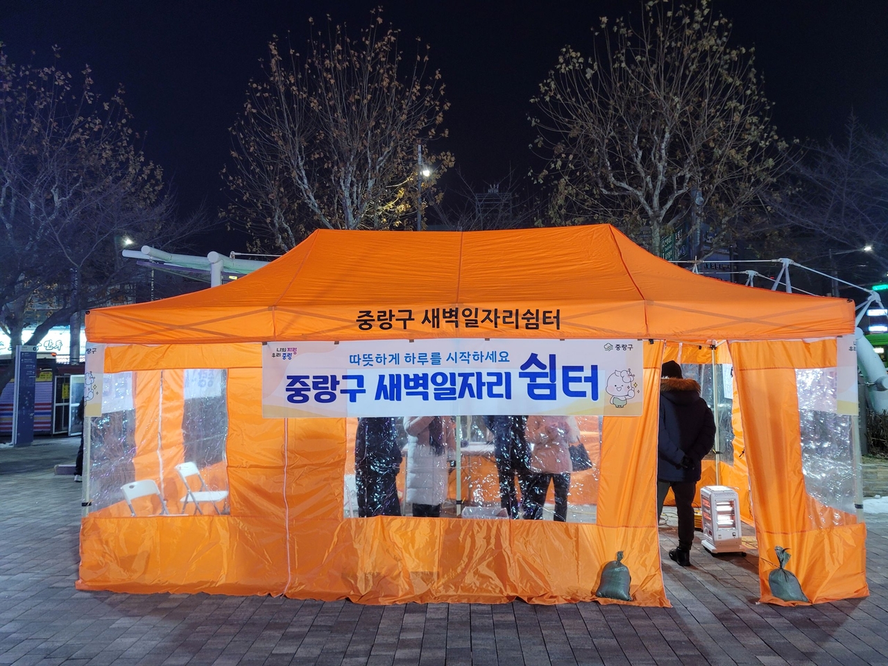 1월 8일부터 3월 13일까지 면목역 광장에 겨울철 쉼터 마련…새벽 구직활동 근로자 대상 난방휴식 공간 운영