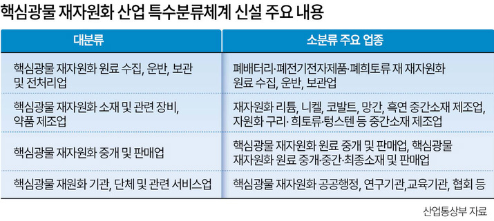 올해 신규사업인 ‘핵심광물 재자원화 시설·장비 지원사업’에도 특수분류에 포함된 기업을 우선 선정할 방침이다.