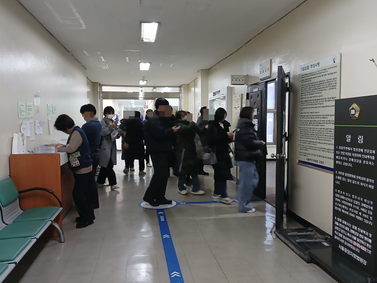 | 8일 경매가 열린 서울중앙지방법원 제4별관 내 법정으로 응찰자들이 입장하고 있다. 김희량 기자 |