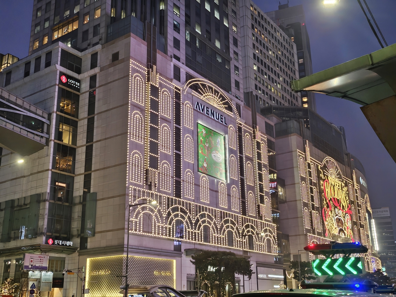 | 서울 중구 명동의 한 건물이 각종 조명 장식으로 밝게 빛나고 있다. 김광우 기자. |