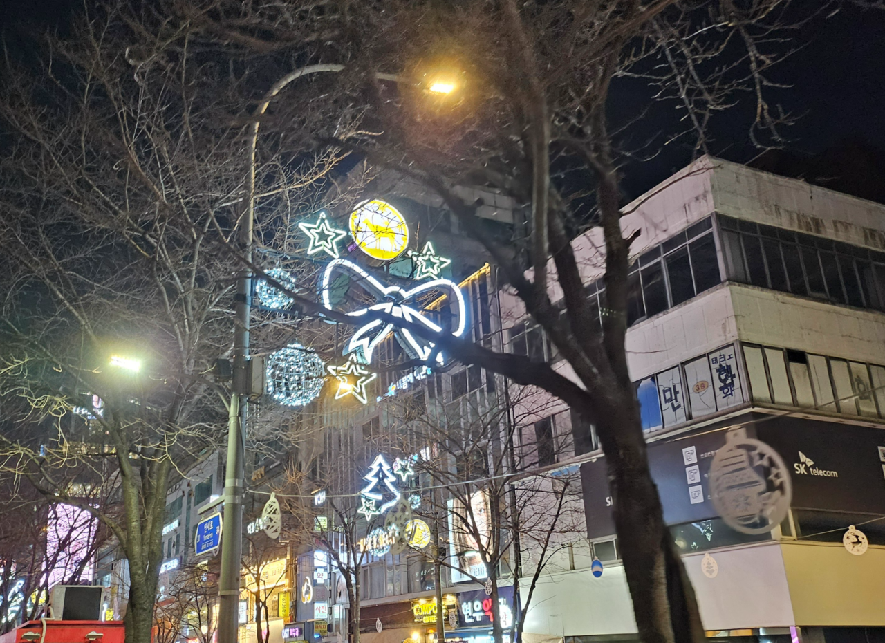 | 서울 서대문구 한 거리, 일루미네이션 조명이 빛나고 있다. 김광우 기자. |
