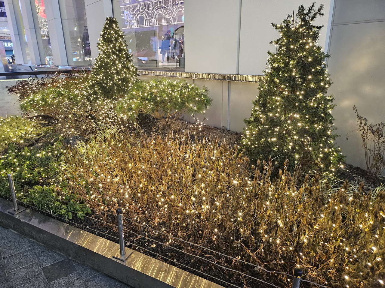 | 서울 중구 한 거리 화단에 조명이 빛나고 있다. 김광우 기자. |