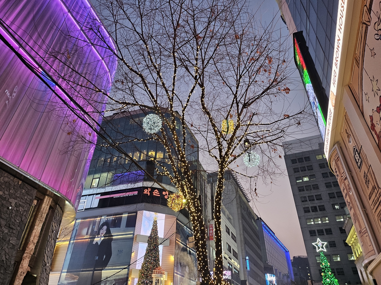 | 서울 중구 명동 거리에 조명으로 장식된 가로수. 김광우 기자. |