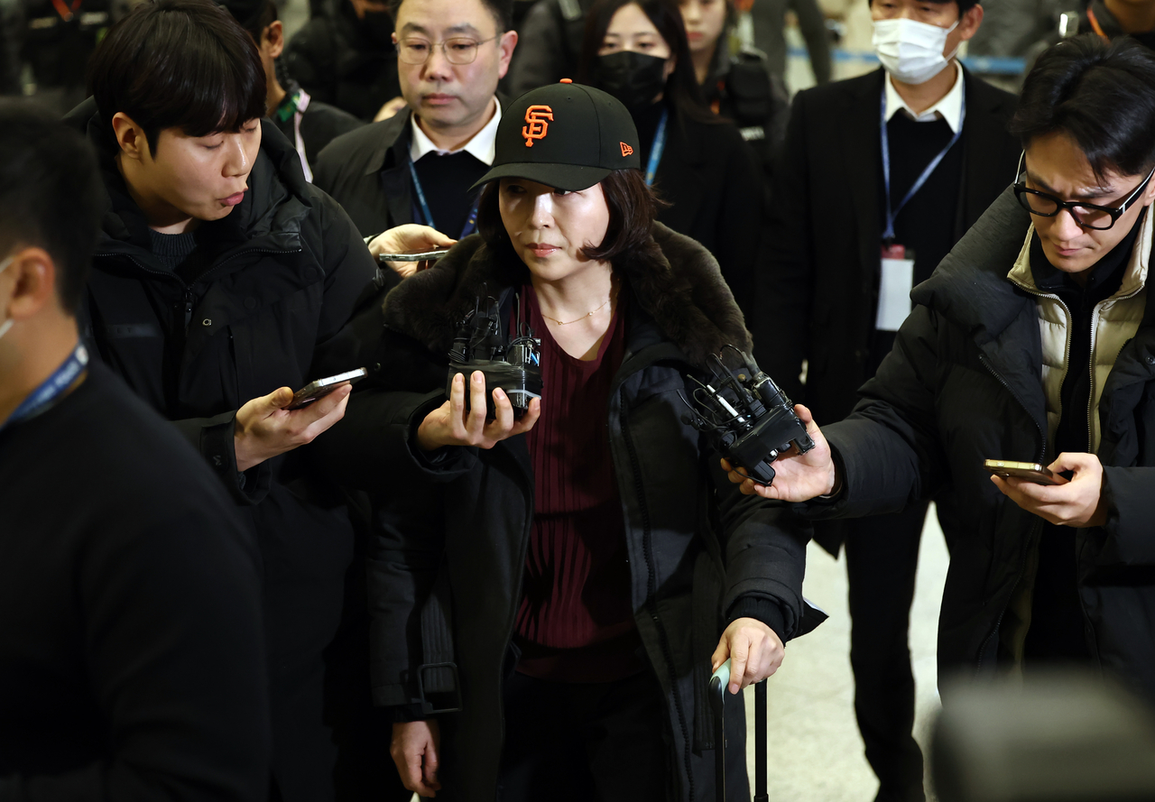 김 시의원은 이날 오후 7시 16분 인천국제공항 입국장에 모습을 드러냈다. 검정색 패딩에 미국 프로야구 샌프란시스코팀 모자를 눌러쓴 상태였다.